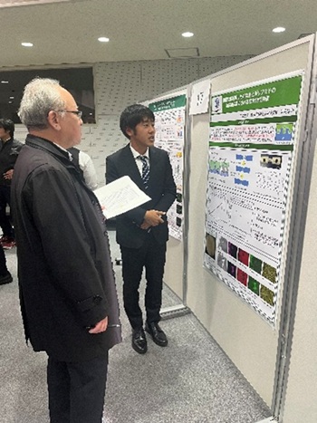 今回初めて学会に参加させていただき,ポスター発表をさせていただきました.自分の研究を分かりやすく伝えられるか不安もありましたが、多くの方に理解を示していただき、さまざまな分野の先生方や学生の方々と意見交換を行うことができ,とても有意義な時間となりました.特に、似た分野の方々の発表を聴講し,意見交換できたことは大きな学びになりました.今回の経験を今後の研究活動に生かしていきたいと思います.